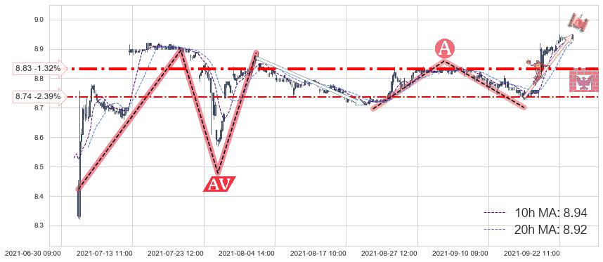 ♞ 10小时均线:8.94,20小时均线:8.92→ 快线>慢线