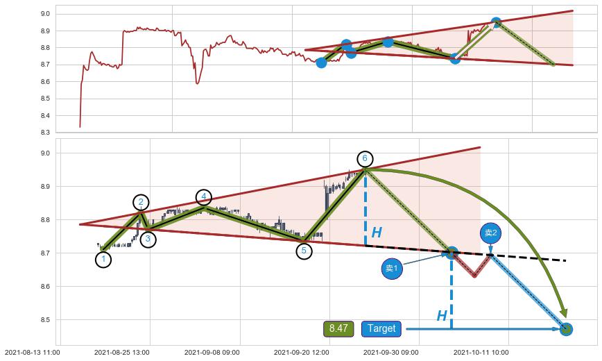 ➣ 【仅预测突破】最后价格:8.95与预测突破价格:8.70→【空间较大】后续最小【反转】第一目标价格→(10-15:14: 8.47 )