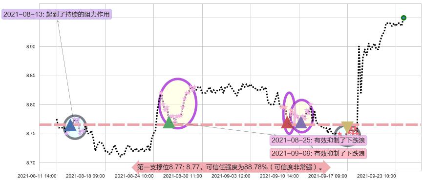 2021-09-13: 第一支撑位8.77有效抑制了下跌浪,成功阻止了价格的继续下跌。