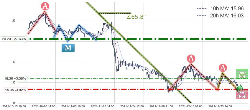 ♘ 阻力价格位20.20,可信任强度95.41%,距离最后交易2021-12-27 15:00形成的收盘价格15.83相差 +27.63%