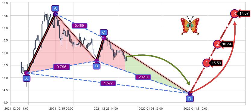 ➣ 未完成【蝴蝶】形态起点X: 12-06:09, 已到达C点: 12-21:12, 预测最终D点: 01-07:14, 共182交易小时