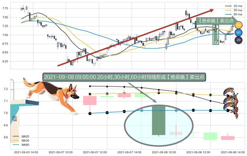 ⚀ 2021-09-08 09:00:00小时显现 20小时-30小时-60小时均线 【绝命跳】卖出点 看空信号,后市看跌,卖出