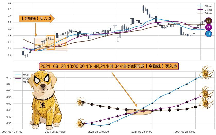 ⚀ 2021-08-23 13:00:00小时显现 13小时-21小时-34小时均线 【金蜘蛛】买入点 看多信号,后市看涨,买入