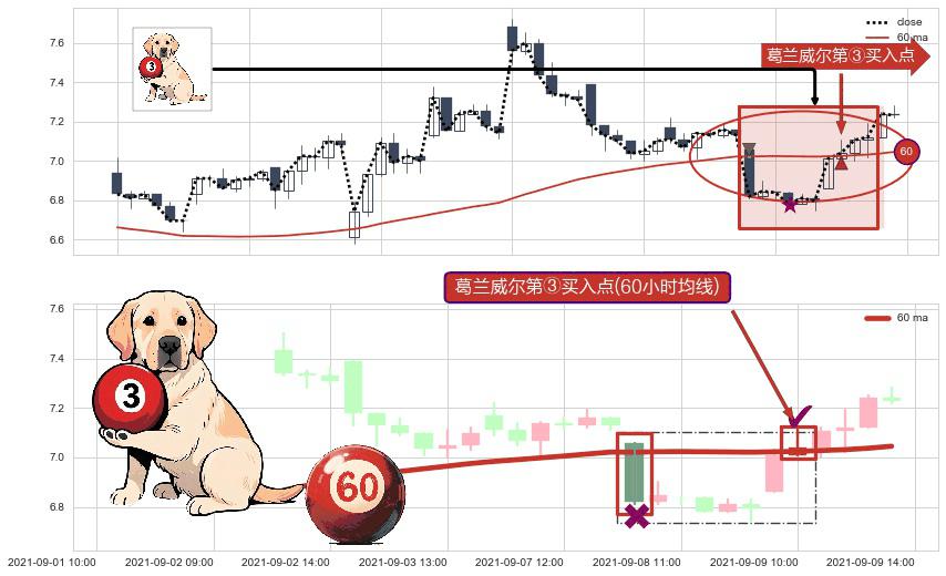 ⚀ 2021-09-09 10:00:00-小时显现 葛兰威尔均线 60小时均线 第③买入点 上升趋势的中继信号,后市看涨,买进信号