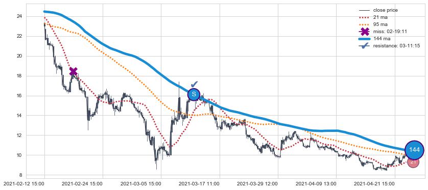⚀ 中期均线MA21上穿长期均线MA34形成的交叉是标准 黄金交叉