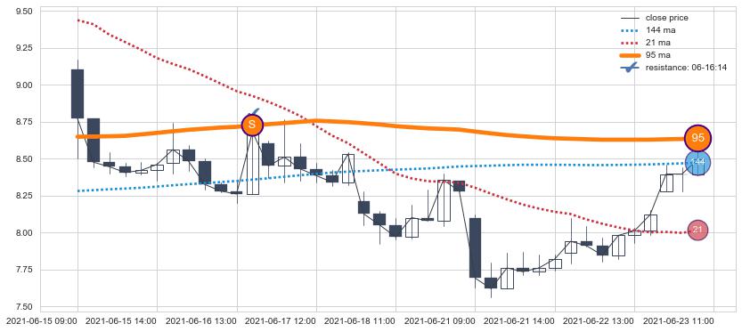 ⚃ 2021-08-30 10:00:00小时开盘价格在三条均线下收大阳线,收盘全突破均线,收盘股价上涨1.45%