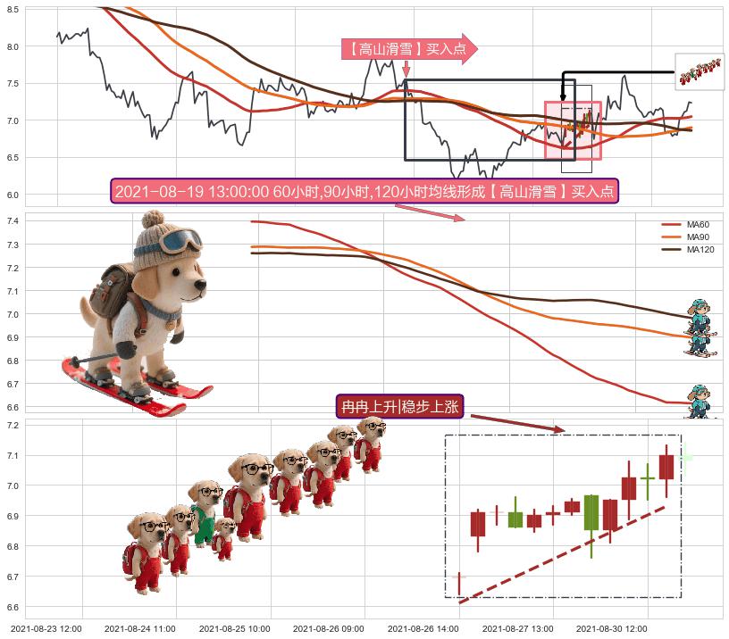 | 14 🅚:【高山滑雪】买入点 ➕ 📡:谐波赛福猜想c点下沉击穿越过b点后报复性拉升上涨(均值回复) ☞ 看多信号 ⇥ 【均线】交织【图形】⇥ 综合量化分数: 73 | > |