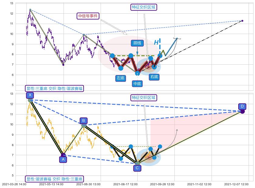 | 13 🅚:【蛟龙出海】买入点 ➕ 📡:谐波赛福猜想c点下沉击穿越过b点后报复性拉升上涨(均值回复) ☞ 看多信号 ⇥ 【均线】交织【图形】⇥ 综合量化分数: 59 | > |