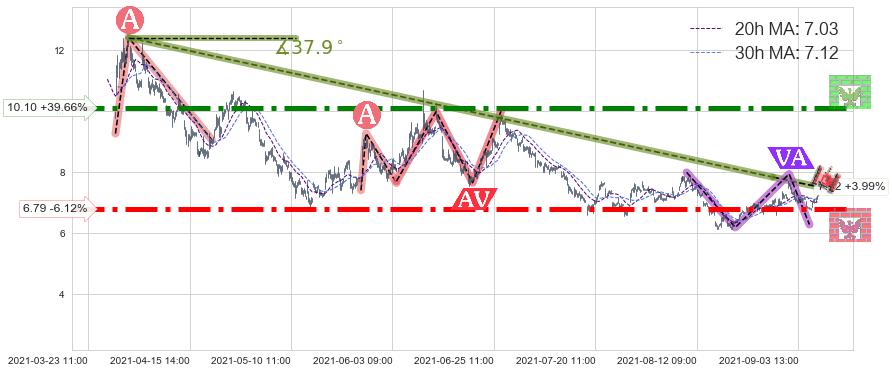 ♞ 20小时均线:7.03,30小时均线:7.12→ 快线<慢线