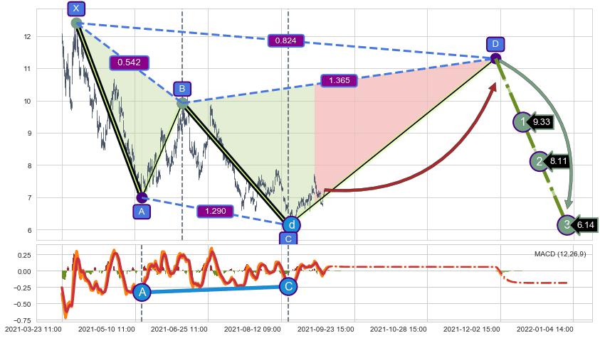 ➣ D点拟合预测价格11.30,距离最后交易收盘价格7.23相差 +56.30%