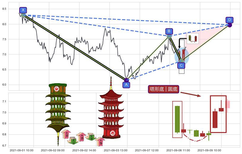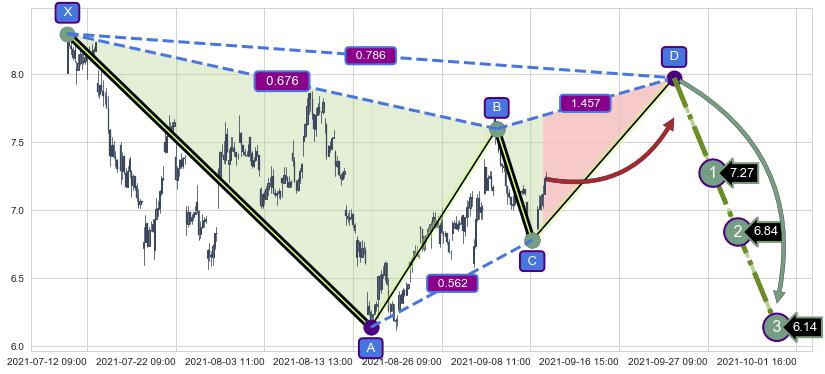 ➣ D点拟合预测价格7.97,距离最后交易收盘价格7.23相差 +10.30%