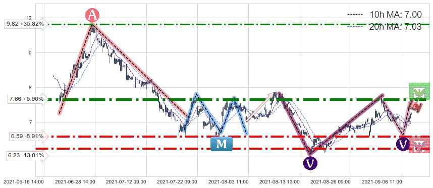 ♘ 阻力价格位7.66,可信任强度93.08%,距离最后交易2021-09-09 14:00形成的收盘价格7.23相差 +5.90%