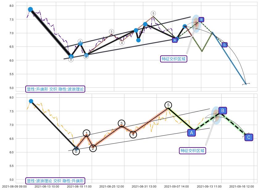 从2021-09-08 12:00至2021-09-09 14:00,共包含9个小时,阶段股价上涨6.50%,阶段股价变动位移路程比: 1 : 1.1