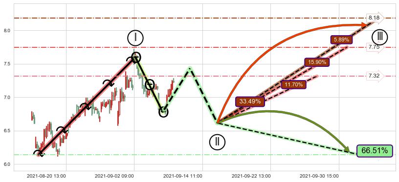 ➢ 循环浪继续向上【最低】位置(09-28:15, 7.32),匹配聚类样本比例34.93%, 可能性概率11.70%