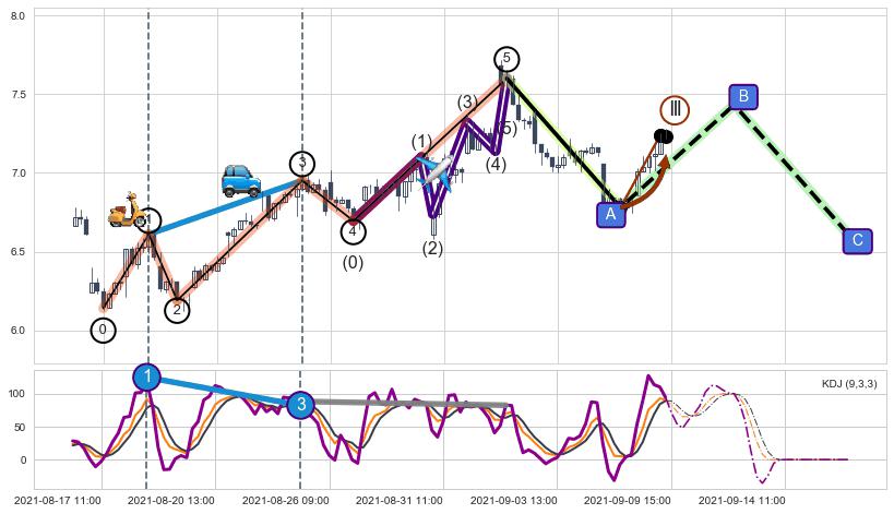 从2021-08-31 09:00至2021-09-08 12:00,共包含34个小时,阶段股价上涨1.15%,阶段股价变动位移路程比: 1 : 35