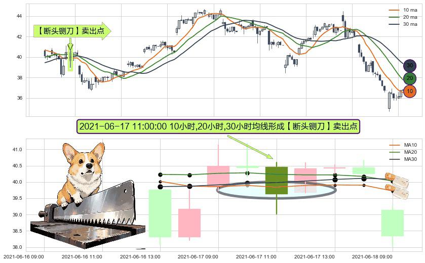 形态多维评估: ⚀ 2021-06-17 11:00:00小时显现 10小时-20小时-30小时均线 【断头铡刀】卖出点 看空信号,后市看跌,卖出