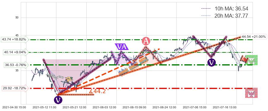 ♘ 阻力价格位36.53,可信任强度74.90%,距离最后交易2021-07-19 15:00形成的收盘价格36.81相差 -0.76%