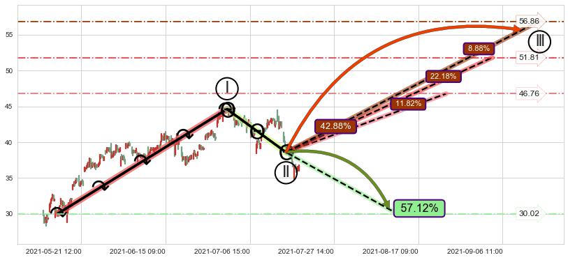 ➢ 循环浪继续向上【最低】位置(08-23:14, 46.76),匹配聚类样本比例27.58%, 可能性概率11.82%