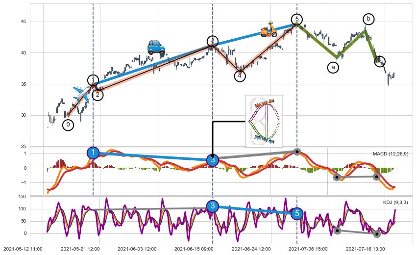 ➣ 第一, 三, 五浪上涨动能逐渐【衰弱变小】,趋势呈现不稳迹象