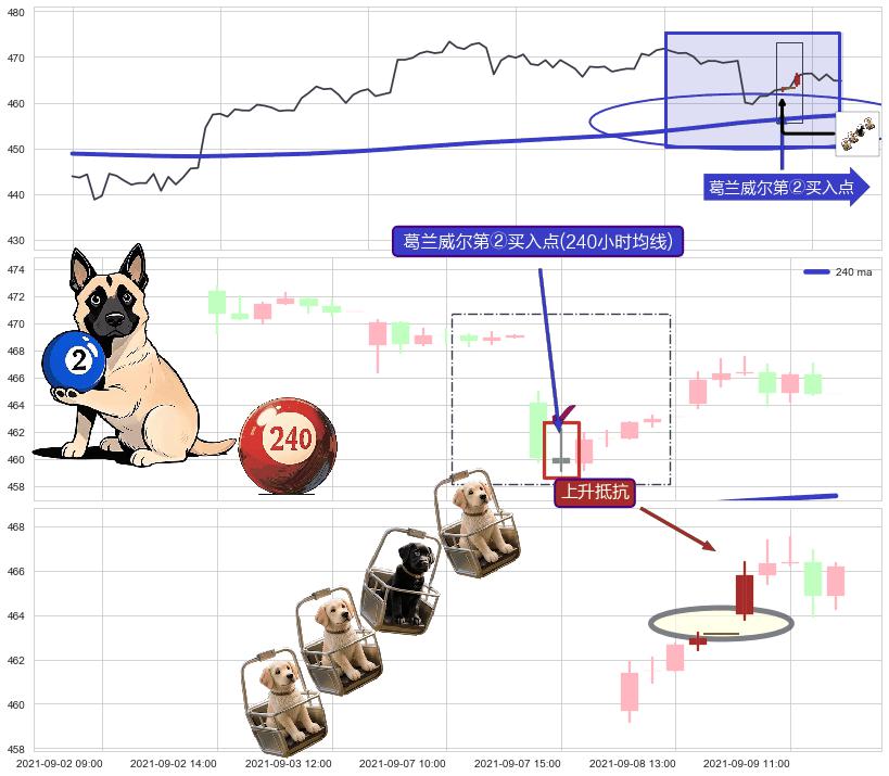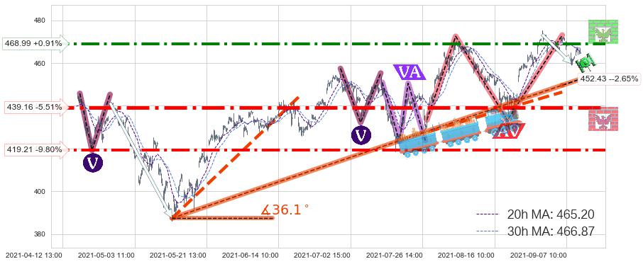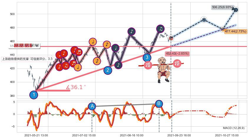 🍖 长线趋势跟踪组合短线均值回复[强支撑信号]2021-05-12 14:00-2021-09-03 11:00上升趋势依然成立(上涨趋势跟踪依然可行),短线价格略微下行回调(均值回复猜想),即将接近趋势提供的未破位的支撑价格:452.43。