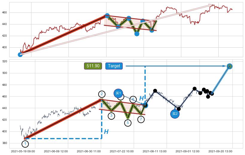 ➣ 最小中继整理涨幅→𝐇: 67.10 (𝐇旗杆的长度:旗杆起点→顶点)