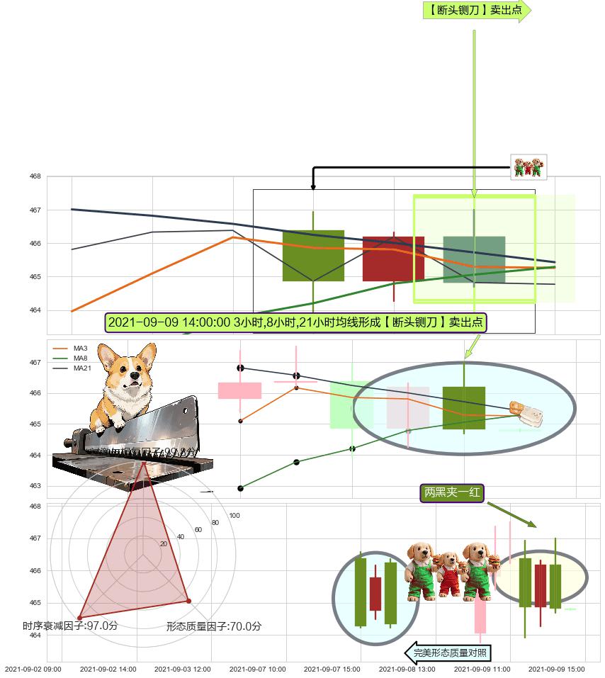 | 3 🅚:【断头铡刀】卖出点 ➕ 📡:谐波螃蟹猜想c点拉升接近b点后强阻力来临下沉下跌(均值回复) ☞ 看空信号 ⇥ 【均线】交织【图形】⇥ 综合量化分数: 47 | > |