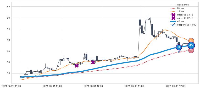 1. 45小时均线确认关键支撑: 06-14 09:00