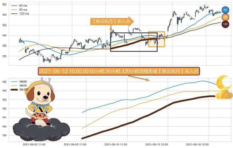 ⚀ 2021-08-05 09:00:00小时-2021-08-19 12:00:00小时显现 60小时-90小时-120小时均线 【烘云托月】买入点 看多信号,后市看涨,买入