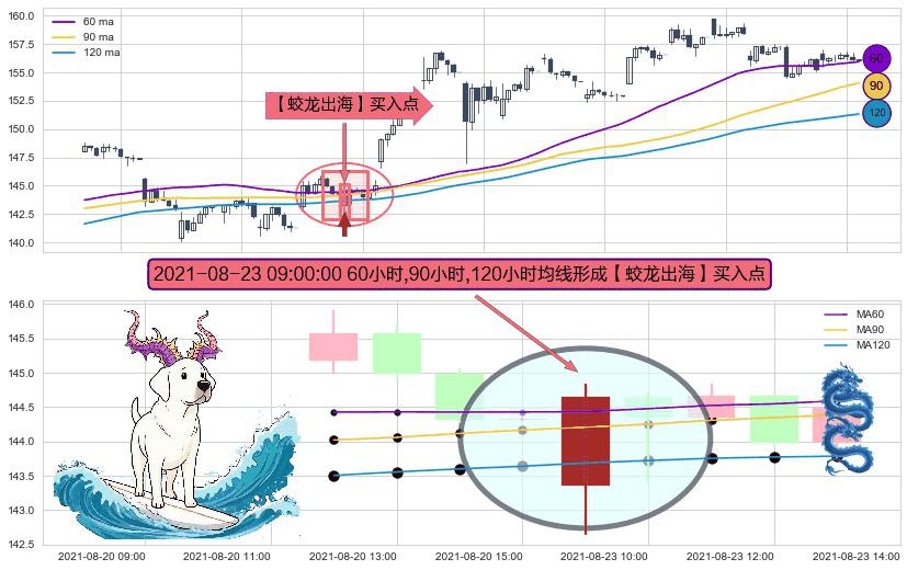 ⚀ 2021-08-23 09:00:00小时显现 60小时-90小时-120小时均线 【蛟龙出海】买入点 看多信号,后市看涨,买入