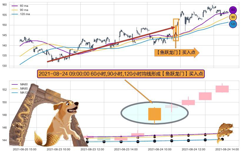 ⚀ 2021-08-24 09:00:00小时显现 60小时-90小时-120小时均线 【鱼跃龙门】买入点 看多信号,后市看涨,买入