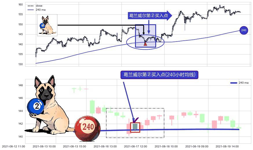 ⚀ 2021-08-17 10:00:00-小时显现 葛兰威尔均线 240小时均线 第②买入点 上升趋势的中继信号,后市看涨,买进信号