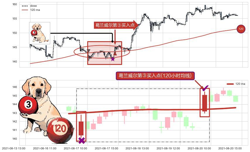 ⚀ 2021-08-20 09:00:00-小时显现 葛兰威尔均线 120小时均线 第③买入点 上升趋势的中继信号,后市看涨,买进信号