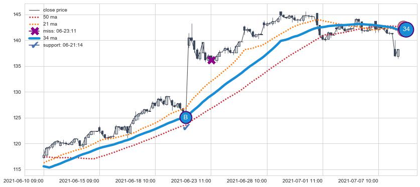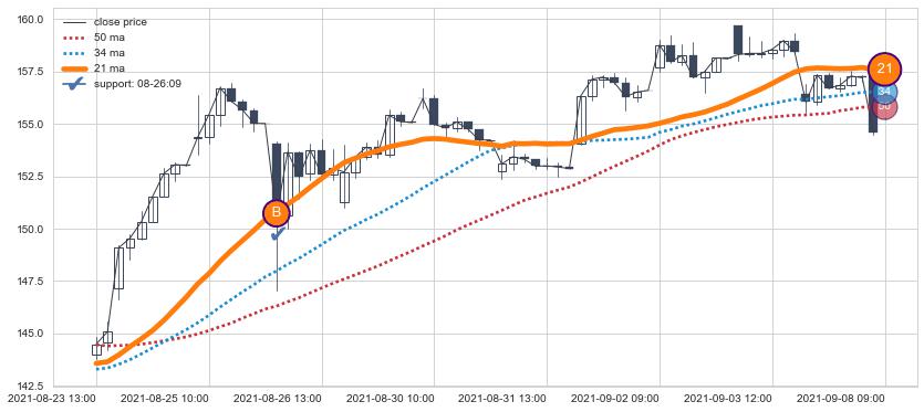 ⚂ 2021-08-17 09:00:00-小时均线向下破位,2021-08-20 09:00:00-小时重新上穿突破均线,均线支撑再次生效
