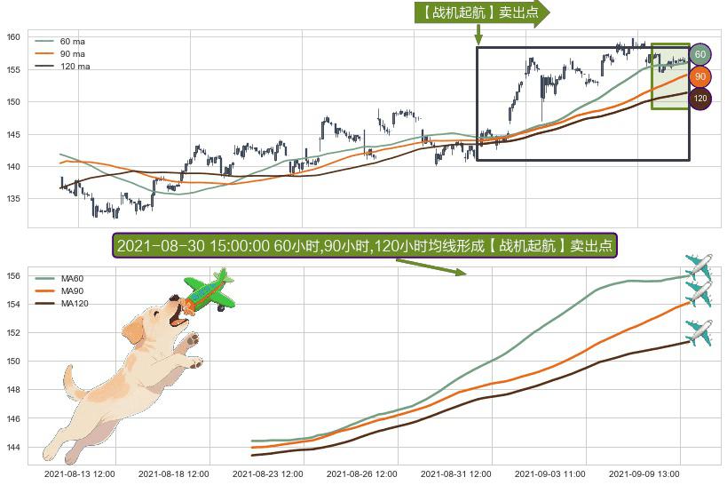 ⚀ 2021-08-19 15:00:00小时-2021-09-09 15:00:00小时显现 60小时-90小时-120小时均线 【战机起航】卖出点 看空信号,后市看跌,卖出
