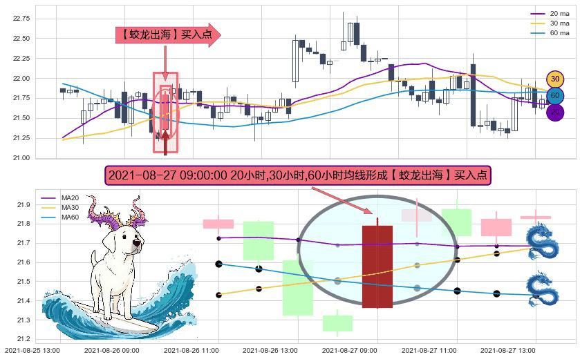 形态多维评估: ⚀ 2021-08-27 09:00:00小时显现 20小时-30小时-60小时均线 【蛟龙出海】买入点 看多信号,后市看涨,买入