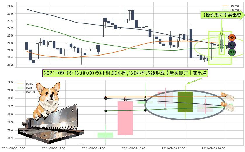形态多维评估: ⚀ 2021-09-09 12:00:00小时显现 60小时-90小时-120小时均线 【断头铡刀】卖出点 看空信号,后市看跌,卖出
