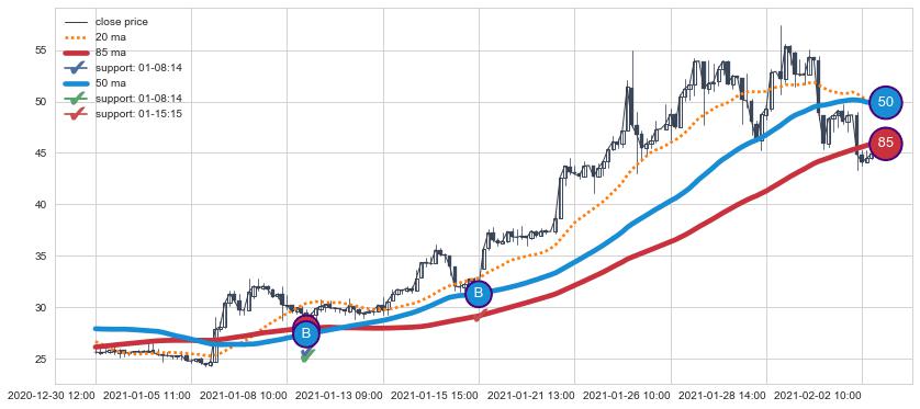 上涨趋势12-30 12:00-02-02 12:00,均线50, 85确认关键支撑2处