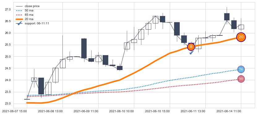 上涨趋势06-22 14:00-07-01 11:00,均线20确认关键支撑1处