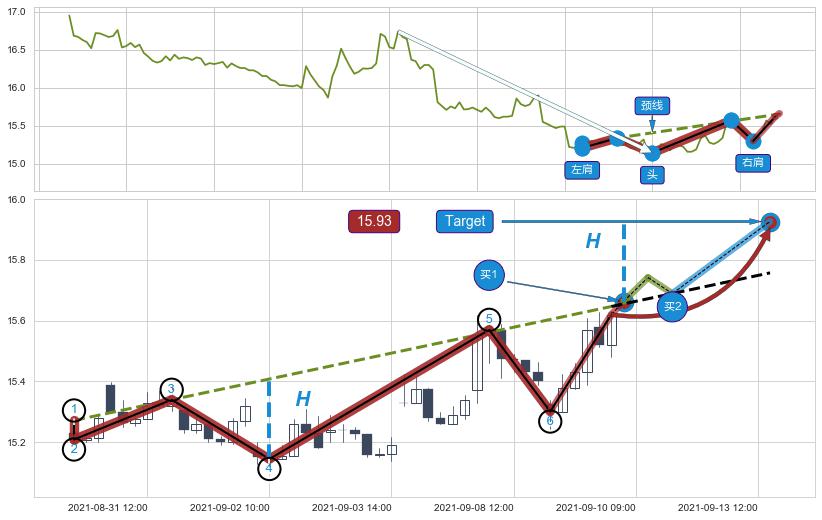 ➢ AI预测: 假定反转启动后, 第❷目标位置(09-14:14, 15.37)
