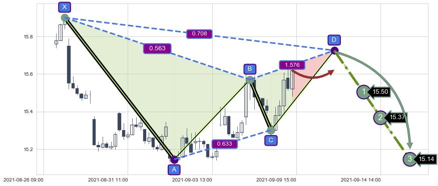 ➣ D点拟合预测价格15.72,距离最后交易收盘价格15.62相差 +0.67%