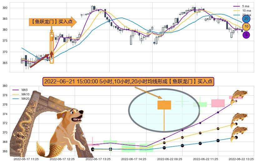 形态多维评估: ⚀ 2022-06-15 10:25:00小时显现 8小时-13小时-21小时均线 【金蜘蛛】买入点 看多信号,后市看涨,买入