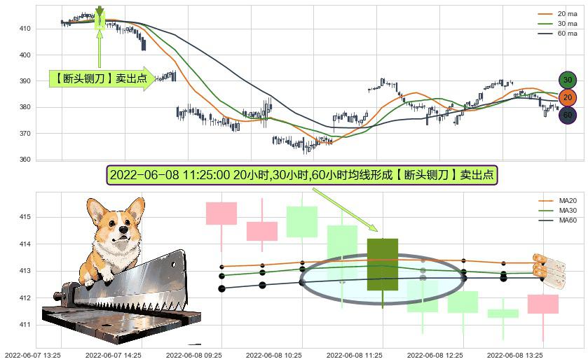 形态多维评估: ⚀ 2022-06-08 11:25:00小时显现 20小时-30小时-60小时均线 【断头铡刀】卖出点 看空信号,后市看跌,卖出