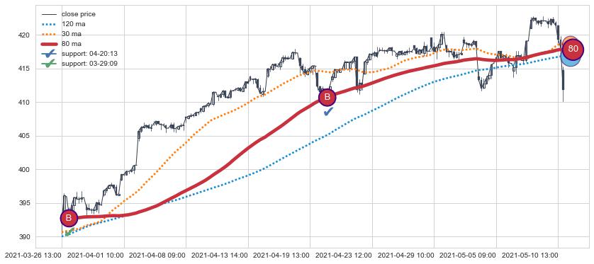 上涨趋势03-26 13:00-05-11 09:00,均线80确认关键支撑2处