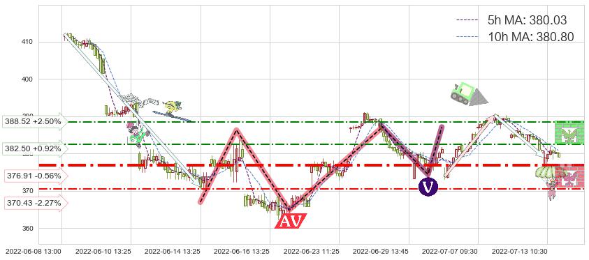 ♘ 阻力价格位382.50,可信任强度40.94%,距离最后交易2022-07-13 14:30形成的收盘价格379.03相差 +0.92%