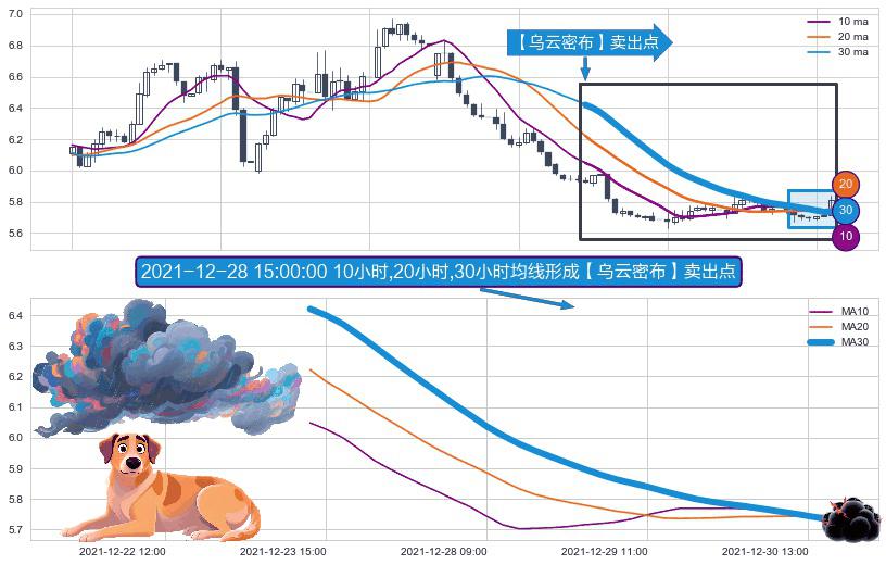 ⚀ 2021-12-23 14:00:00小时-2021-12-30 15:00:00小时显现 10小时-20小时-30小时均线 【乌云密布】卖出点 看空信号,后市看跌,卖出