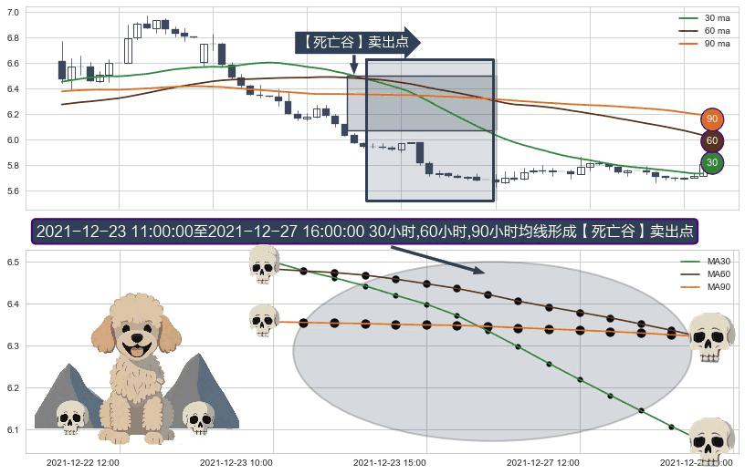 ⚀ 2021-12-23 12:00:00-小时至2021-12-27 16:00:00-小时显现 30小时-60小时-90小时均线 【死亡谷】卖出点 看空信号,后市看跌,卖出