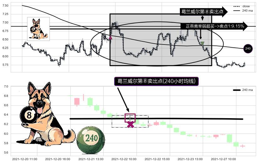 ⚀ 2021-12-22 09:00:00-小时显现 葛兰威尔均线 240小时均线 第⑧卖出点 下降趋势的中继信号,后市看跌,卖出信号