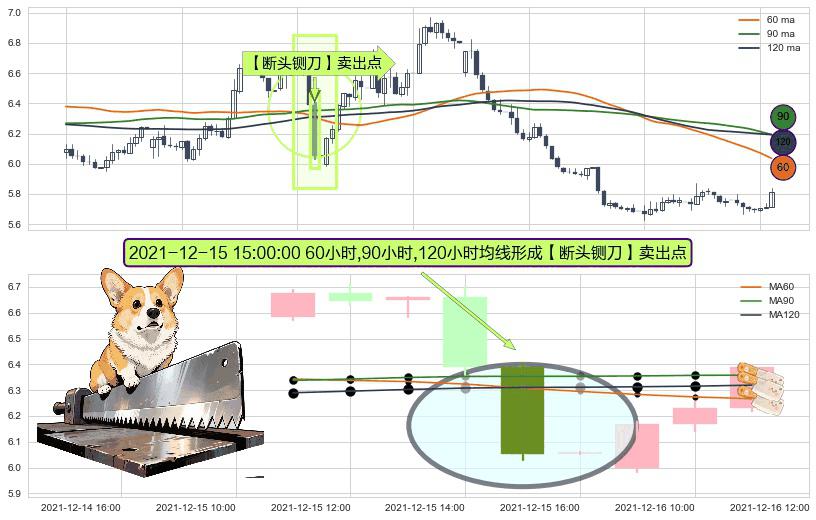 ⚀ 2021-12-15 15:00:00小时显现 60小时-90小时-120小时均线 【断头铡刀】卖出点 看空信号,后市看跌,卖出
