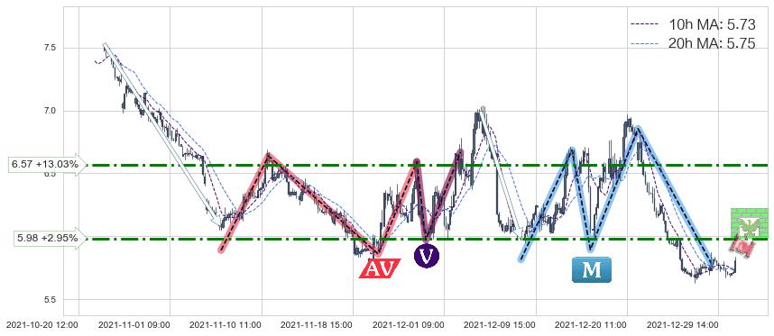 ♞ 10小时均线:5.73,20小时均线:5.75→ 快线<慢线
