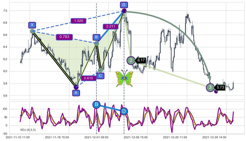➣ 已完成【蝴蝶】形态起点X: 11-10:14, 终点D: 12-03:14, 共118交易小时